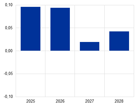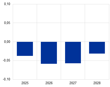 Odhaduje sa, že vplyv na infláciu v základnom scenári bude v rokoch 2025 až 2028 kumulatívne nižší ako 0,1 percentuálneho bodu.