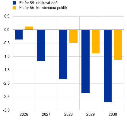 Základný scenár projekcií nezahŕňa vplyv žiadnych ďalších opatrení EÚ, ktoré sú súčasťou balíka „Fit for 55“, keďže ich vplyv sa buď neodhadoval, alebo sa považoval za zanedbateľný. To je v súlade s hospodárskou prognózou Európskej komisie z jesene 2025, v ktorej sa odhaduje zanedbateľný vplyv mechanizmu uhlíkovej kompenzácie na hraniciach na infláciu v krátkodobom horizonte.