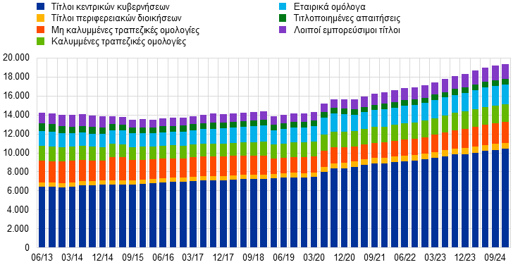15. Το άθροισμα υπερβαίνει το 100% λόγω στρογγυλοποίησης, π.χ. οι τίτλοι του δημόσιου τομέα ήταν για την ακρίβεια 1,558 τρισεκ. ευρώ.