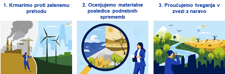 Glej akcijski načrt ECB za vključitev problematike podnebnih sprememb v strategijo denarne politike (2021), strategijo bančnega nadzora (2022–2024) in podnebno agendo (2022).
