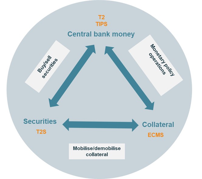 TARGET Services comprise T2, TARGET2-Securities (T2S), TARGET Instant Payment Settlement (TIPS) and the Eurosystem Collateral Management System (ECMS). T2 settles large payments in central bank money, including those relating to monetary policy transactions; T2S settles securities transactions; TIPS settles instant payments; and the ECMS manages assets used as collateral in Eurosystem credit operations. These services facilitate the free flow of central bank money, securities and collateral across Europe, otherwise known as the “magic triangle”. Together, they form – without exaggeration – the backbone of Europe’s financial market infrastructure. TARGET Services have been continuously evolving since the launch of the euro in 1999, and they will continue to evolve in future. Ultimately, our vision is to have a truly domestic European market, in which it makes no difference whether payers and payees, or issuers and investors, transact with counterparties in their own country or anywhere else in Europe.