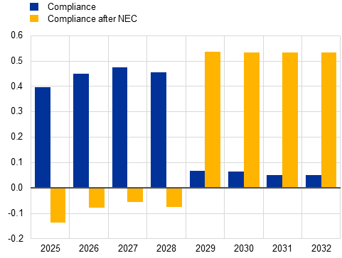 Owing to the relatively small size of most of these countries (with the notable exception of Germany), the additional fiscal space that the NEC could generate between 2025 and 2028 period is estimated to be around €110 billion per year on average.