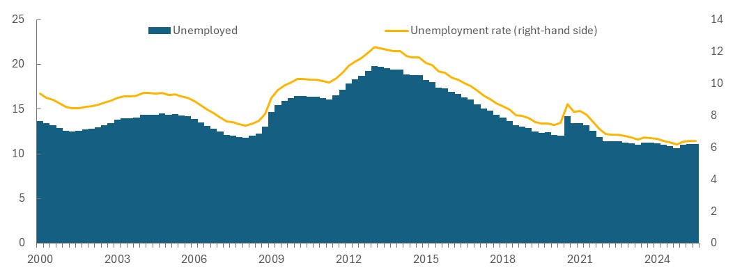 Source: Eurostat, Labour Force Survey, latest observation: Q3 2025.
