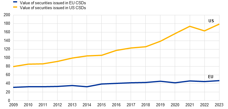 Sources: TARGET2-Securities Annual Report for 2023 and ECB staff calculations.