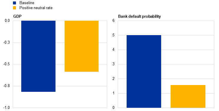 b) Mitigation capacity of the positive neutral rate in a financial distress scenario