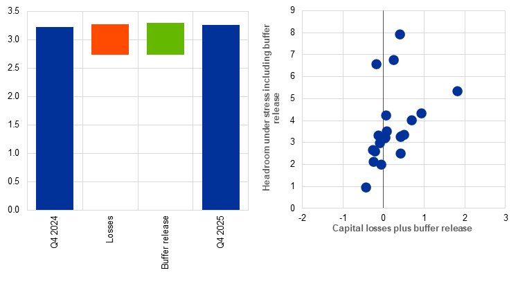 b) Capital headroom under stress vs mitigating impact of releasable buffers