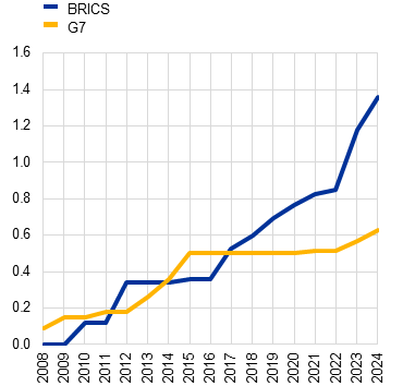 Sources: CEIC, IMF Direction of Trade Statistics, People’s Bank of China, Bank of Russia, Amighini and García-Herrero (2023) and ECB staff calculations.