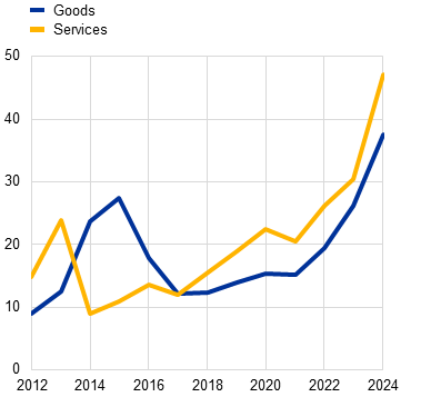 9. See “The euro as a global currency: a payments perspective”, Economic Bulletin, Issue 2, ECB, 2024.