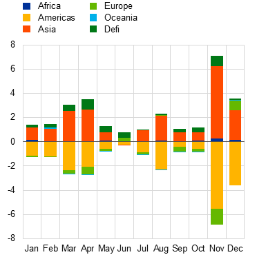 Sources: Chainanalysis, CryptoCompare, CoinGecko, IntoTheBlock and ECB staff calculations.