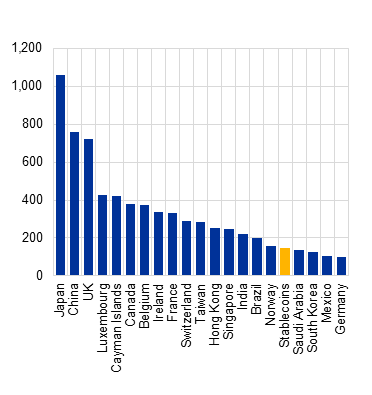 New challenges for the international role of the euro have emerged more recently. The new US Administration has recently taken initiatives to support the global use of cryptocurrencies. These initiatives include the creation of a “strategic bitcoin reserve”, using USD 17 billion in bitcoin seized by the US Treasury in forfeiture proceedings, while other crypto-assets owned by the US government would be pooled to make a “digital assets stockpile”. In addition, some initiatives aim to boost innovation and facilitate the issuance and use of US dollar-based stablecoins, which accounted for around 99% of the capitalisation of the stablecoin market of approximately USD 190 billion at the end of 2024. These developments may have implications for capital flows if they lead to shifts in demand for international reserve assets, and for global financial stability more broadly. US dollar-based stablecoin issuers already hold nearly USD 150 billion in US government debt securities, which is comparable with the holdings of residents in countries such as Saudi Arabia, Korea, Mexico and Germany.