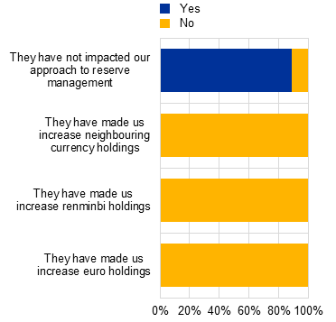 Although current data indicate no significant changes in the international use of the euro, it is important to remain vigilant. For instance, geopolitical concerns remained high for reserve managers and continued to weigh on their investment decisions. Surveys suggest that 80% of official reserve managers continued to consider geopolitics as a major factor affecting their portfolios for the next five to ten years (Section 1.1).