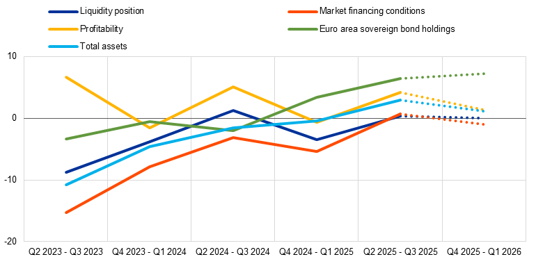• Banks’ access to retail funding remained broadly unchanged in the third quarter of 2025, eased slightly for money markets and securitisations, and to a greater extent for debt securities. Access to debt securities eased more strongly for medium to long-term securities. Over the next three months, banks expect access to improve slightly for retail funding and to tighten slightly for money markets, while remaining broadly unchanged for debt securities and securitisation.