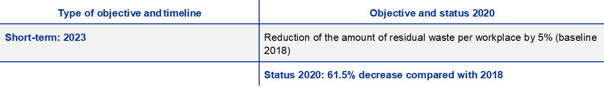 Prior to the COVID-19 pandemic, various measures were successfully introduced to reduce individual packaging in the catering areas. These achievements have been challenged by strict hygiene requirements resulting from the COVID-19 pandemic. Specifically, disposable items, such as take-away containers, were reintroduced in the catering and service areas. To reduce the environmental impact, biodegradable packaging made from sugar cane and other natural materials was introduced. Moreover, the reusable coffee cup scheme that was introduced in 2019 continued to be in place and the deposit system was extended to bowls, cutlery and plates. It is also planned to again limit the use of disposables and packaging insofar as possible as soon as the hygiene requirements related to the COVID-19 pandemic are lifted.