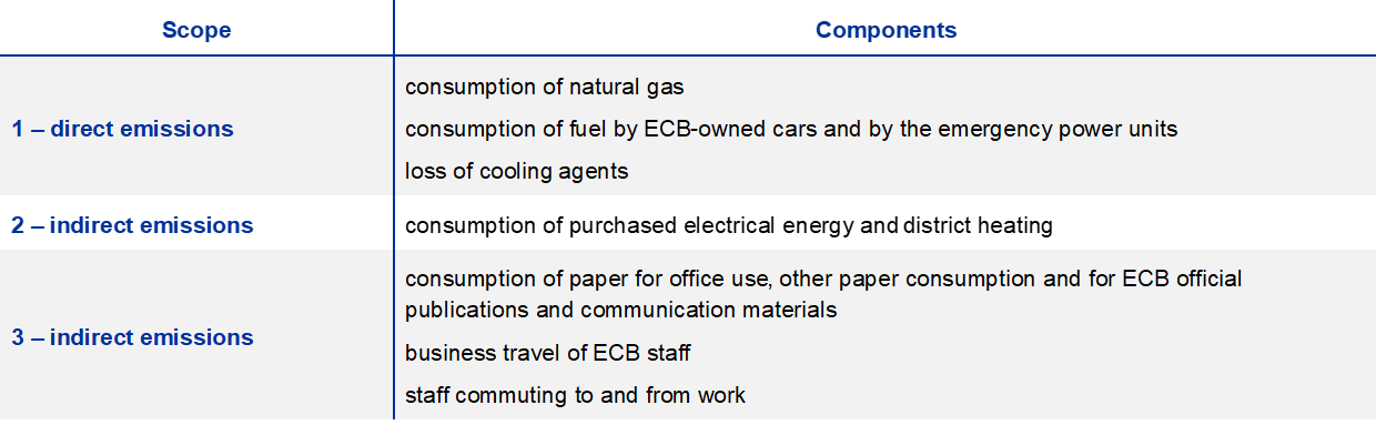 Each year the ECB’s CO2 emissions are calculated on the basis of collected activity data which are compiled in an environmental inventory. The allocation of direct and indirect emissions to Scopes 1, 2 and 3 is in line with the Greenhouse Gas Protocol.[2]