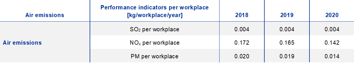 Notes: Environmental data per workplace in 2020 are included in Chapter 5 – Technical information, as they are considered less representative of the environmental performance in 2020.