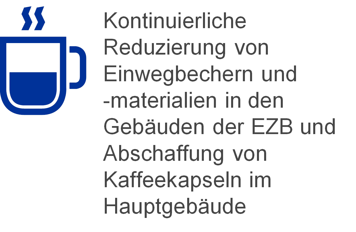 Alle in den EZB-Gebäuden tätigen Mitarbeiterinnen und Mitarbeiter sind aufgefordert, die Umweltpolitik in ihre tägliche Arbeit einzubeziehen und einen aktiven Beitrag zum Erreichen der entsprechenden Ziele zu leisten. Dies geschieht, indem Maßnahmen getroffen und umgesetzt werden, die sich (direkt oder indirekt) positiv auf die Umweltleistung der EZB auswirken.