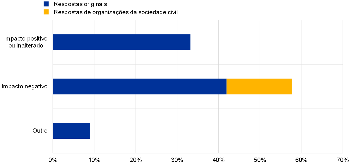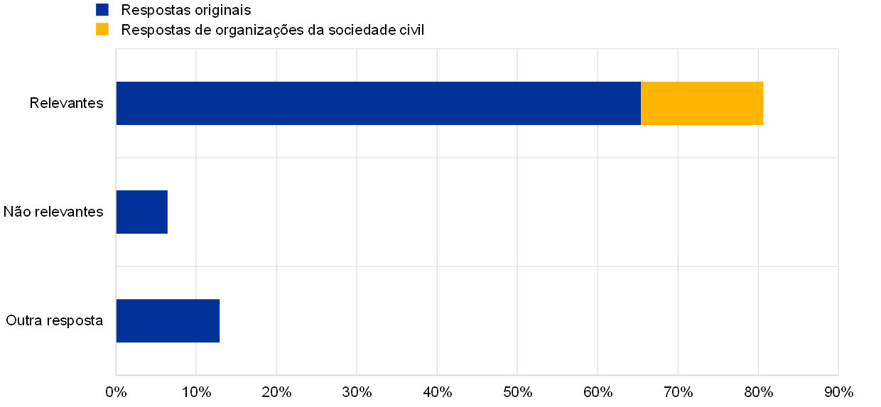 Notas: “Respostas de organizações da sociedade civil” refere‑se a respostas que foram copiadas de contributos disponibilizados por organizações como a Greenpeace. “Respostas originais” refere‑se às demais respostas.
