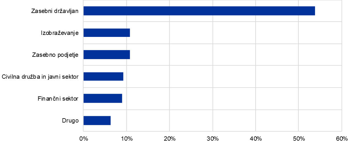 Kar zadeva porazdelitev po sektorjih, so najbolj zastopani zasebni državljani (54%), sledijo pa jim zasebna podjetja (11%), zaposleni v izobraževanju (11%) ter zaposleni v finančnem sektorju (9%) (glej graf 3).