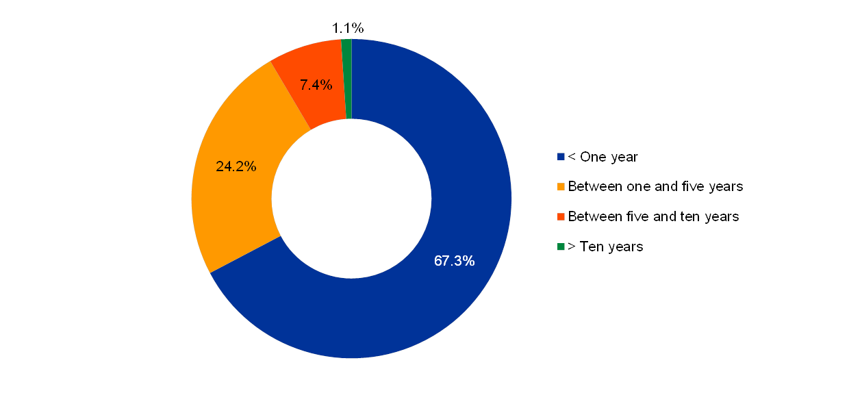 The ECB’s own funds portfolio is held as a counterpart to its paid-up capital, the provision for financial risks and the general reserve fund. The purpose of this portfolio is to provide income to help fund the ECB’s operating expenses which are not related to the performance of its supervisory tasks.[9] In this context, the objective of the management of the own funds portfolio is to maximise returns, subject to a number of risk limits. This results in a more diversified maturity structure (see Chart 8) than in the foreign currency reserves portfolio.