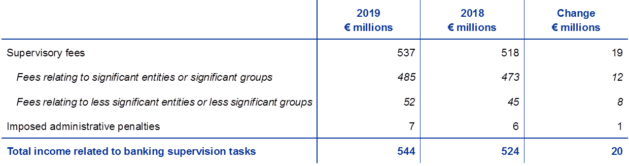 Thus, the related income of the ECB for supervisory tasks in 2019 was as follows: