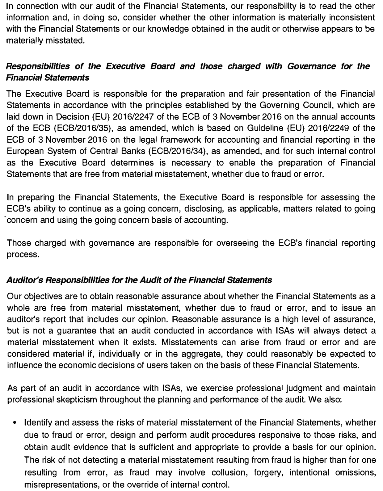 Risk management is a critical part of the ECB’s activities and is conducted through a continuous process of (i) risk identification and assessment, (ii) review of the risk strategy and policies, (iii) implementation of risk mitigating actions, and (iv) risk monitoring and reporting, all of which are supported by effective methodologies, processes and systems.