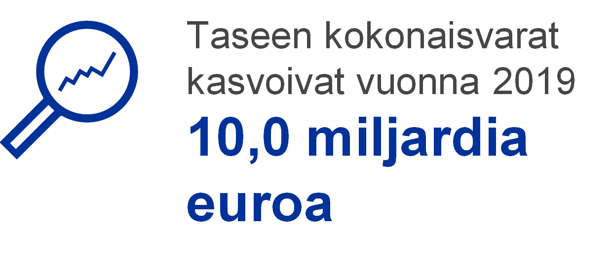 EKP:n taloudellisiin resursseihin luetaan EKP:n pääoma, yleinen riskivaraus, arvonmuutostilit sekä tilikauden nettovoitto. Taloudelliset resurssit sijoitetaan omaisuuseriin, joista kertyy tuottoja, ja/tai niillä katetaan suoraan taloudellisista riskeistä aiheutuvia tappioita. Vuoden 2019 lopussa EKP:n taloudellisten resurssien kokonaismäärä oli 47,7 miljardia euroa eli 5,7 miljardia euroa suurempi kuin vuotta aiemmin (ks. kuvio 9). Kasvu johtui arvonmuutostilien saldojen suurenemisesta euron heikkenemisen vuoksi.