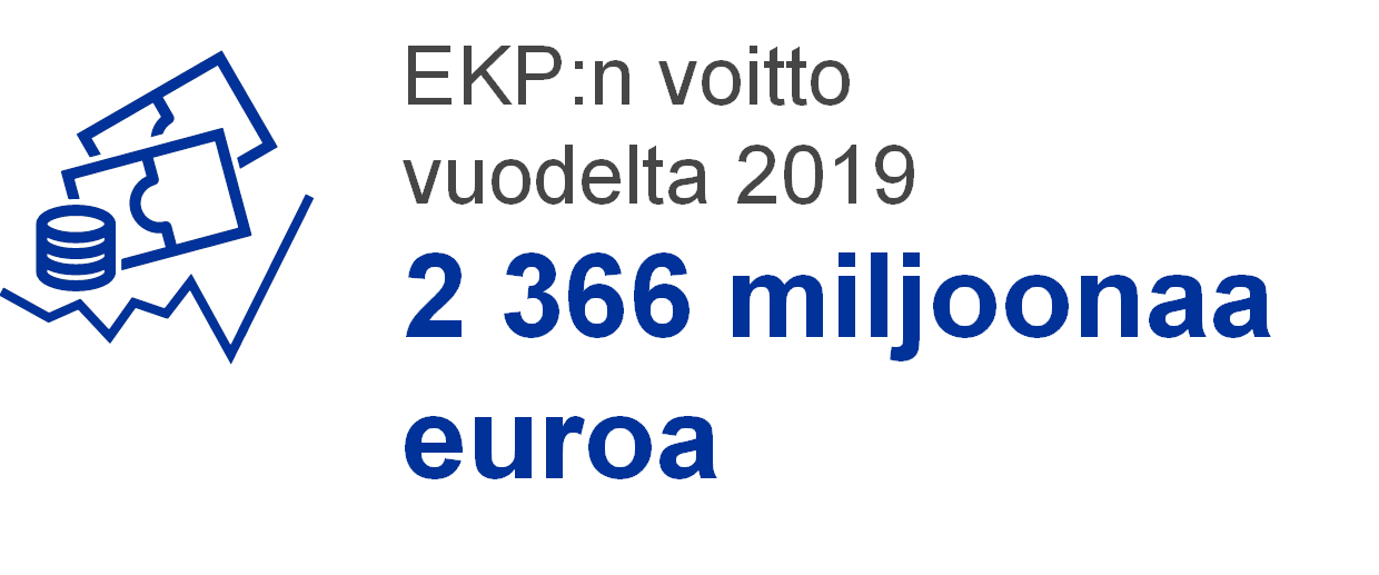 EKP:n voitto vuodelta 2019 oli 2 366 miljoonaa euroa (1 575 miljoonaa euroa vuonna 2018). Voitto kasvoi edellisvuodesta 790 miljoonaa euroa pääasiassa korko- ja rahoituskatteen kasvun vuoksi.
