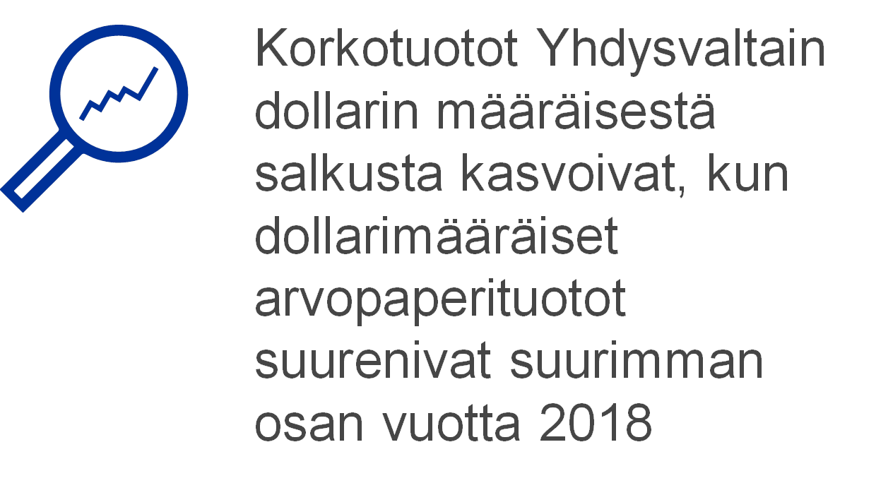 Koska etenkin lyhytaikaisten dollarimääräisten arvopaperien tuottojen kasvu nopeutui suurimman osan vuotta 2018 (ks. kuvio 13), EKP:n hallussa oli aiempaa korkeatuottoisempia arvopapereita, mikä kasvatti Yhdysvaltain dollarin määräisen sijoitussalkun keskituottoa edellisvuoteen verrattuna. Tällä oli myönteinen vaikutus salkusta vuonna 2019 saatuun korkotuottoon.