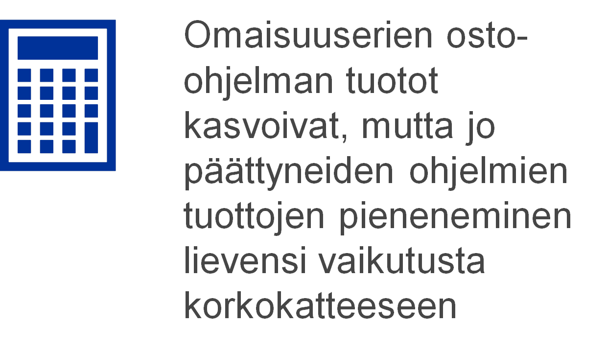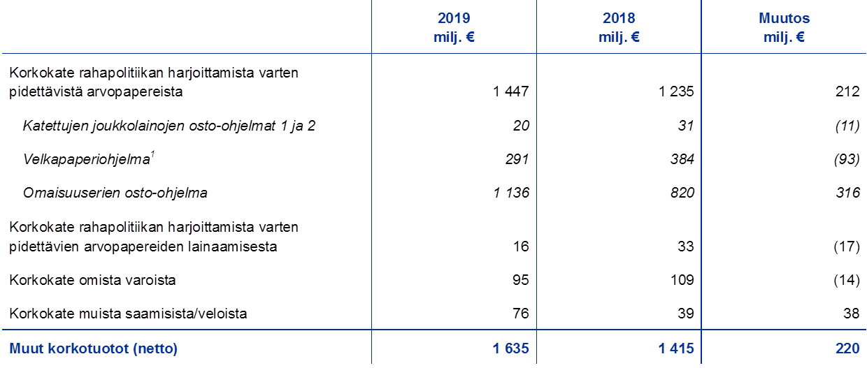 Muut korkotuotot (netto) pienenivät lähinnä siksi, että omien varojen sijoitussalkun korkotuotot supistuivat euroalueen alhaisen korkotason vuoksi.
