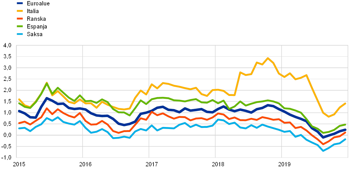 (vuotuisina prosentteina, kuukauden lopun tietoja)