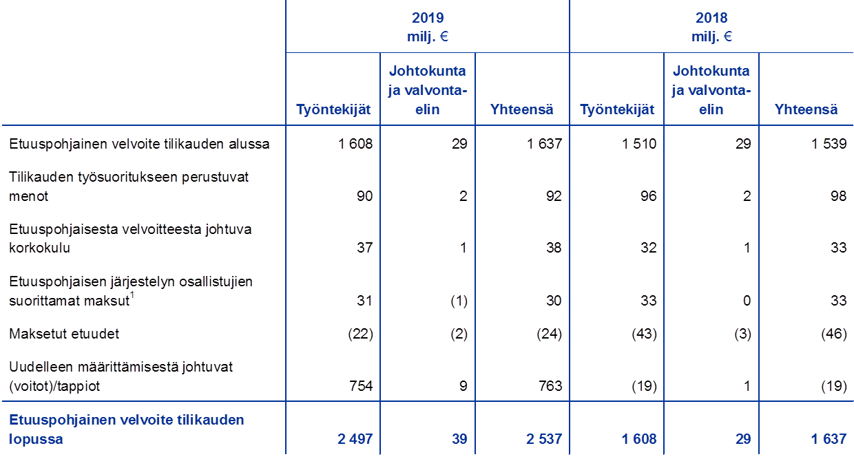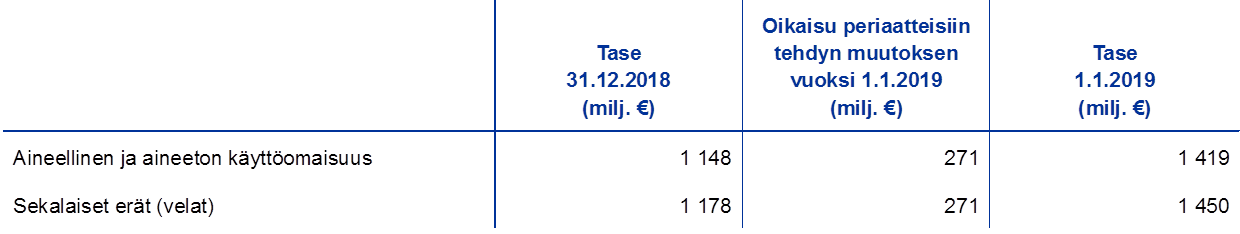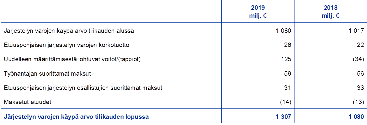 - Tase-erään ”Arvonmuutostilit” sisältyvät myös työsuhteen päättymisen jälkeisten etuuksien uudelleen määrittämisestä johtuvat erät.