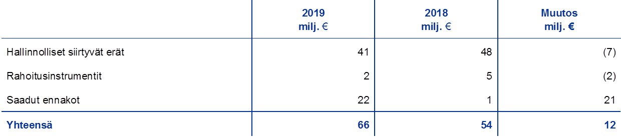 - Hallinnollisten siirtyvien erien ja varauksien kirjaamisessa sovelletaan 100 000 euron alarajaa.