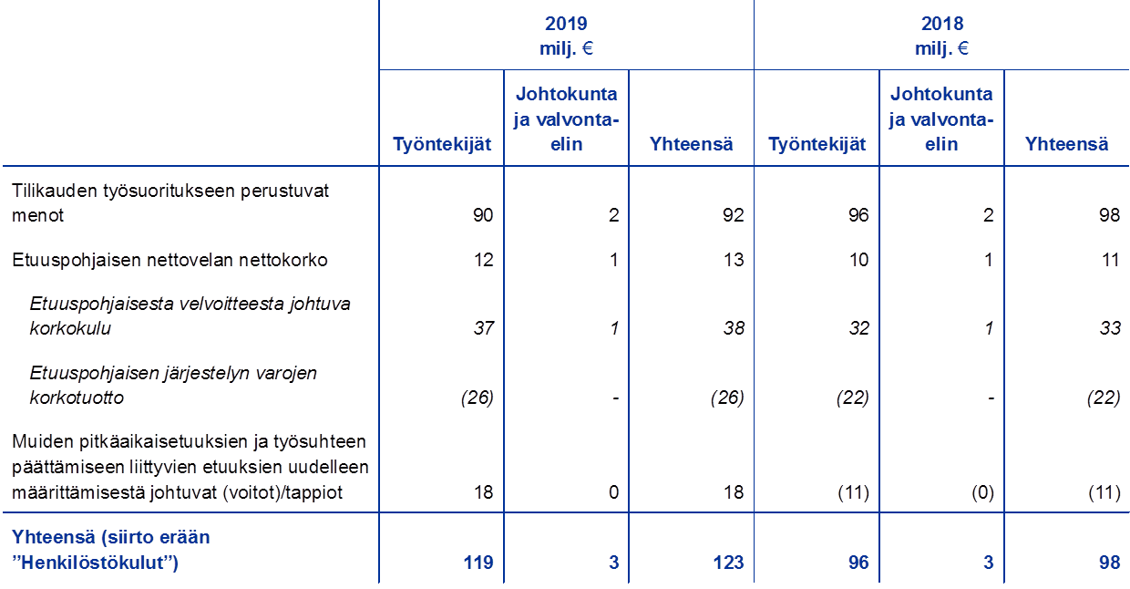 Vuonna 2019 henkilöstökuluihin kirjattiin seuraavaa: