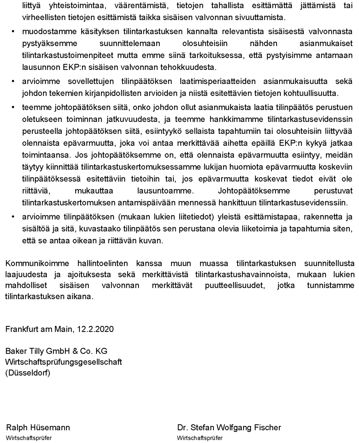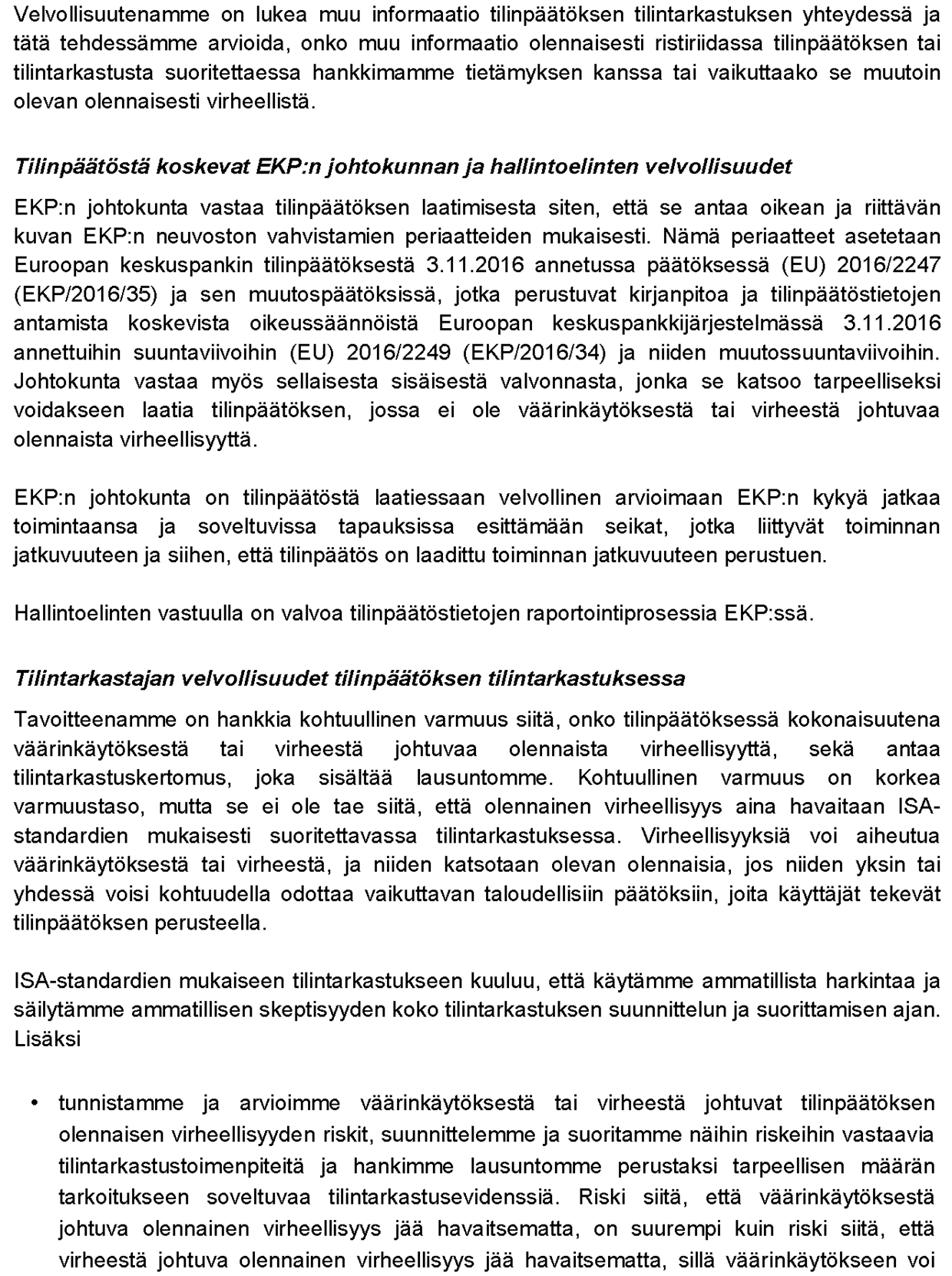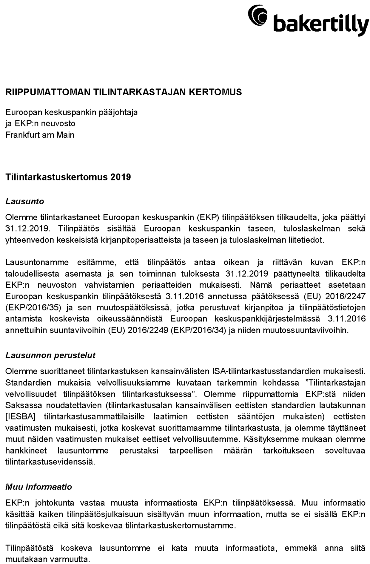 Tämä on EKP:n käännös EKP:n ulkoisen tilintarkastajan kertomuksesta. Jos kieliversioita voi tulkita eri tavoin, tilintarkastajien (Baker Tilly) allekirjoittama englanninkielinen versio pätee.