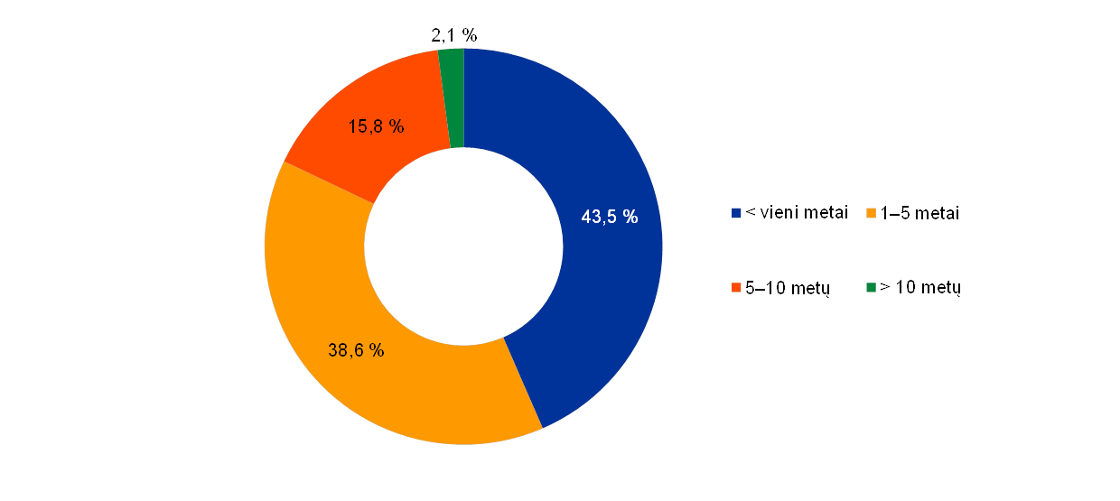 ECB nuosavų lėšų portfelis laikomas kaip jo apmokėtojo kapitalo, atidėjinių finansinei rizikai padengti ir bendrojo atsargų fondo atitikmuo. Šio portfelio paskirtis – uždirbti pajamų, kurios padėtų padengti ECB veiklos išlaidas, nesusijusias su jam pavestų priežiūros uždavinių vykdymu[9]. Taigi, valdant nuosavų lėšų portfelį, siekiama gauti kuo didesnę grąžą, atsižvelgiant į tam tikrus rizikos apribojimus. Todėl šio portfelio terminų struktūra yra labiau diversifikuota (žr. 8 pav.) negu užsienio valiutos atsargų portfelio.