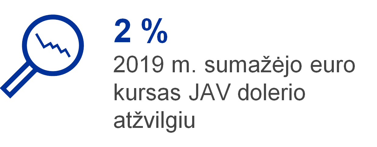 Pagrindiniai užsienio valiutų kursai ir aukso kaina 2015–2019 m.