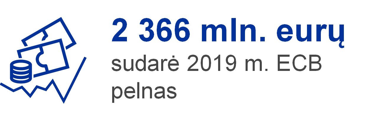 2019 m. ECB grynasis pelnas sudarė 2 366 mln. eurų. Valdančiosios tarybos sprendimu, 2020 m. sausio 31 d. atliktas tarpinis pelno paskirstymas (1 431 mln. eurų) euro zonos NCB. Be to, Valdančioji taryba nusprendė euro zonos NCB paskirstyti ir likusią pelno dalį (935 mln. eurų).