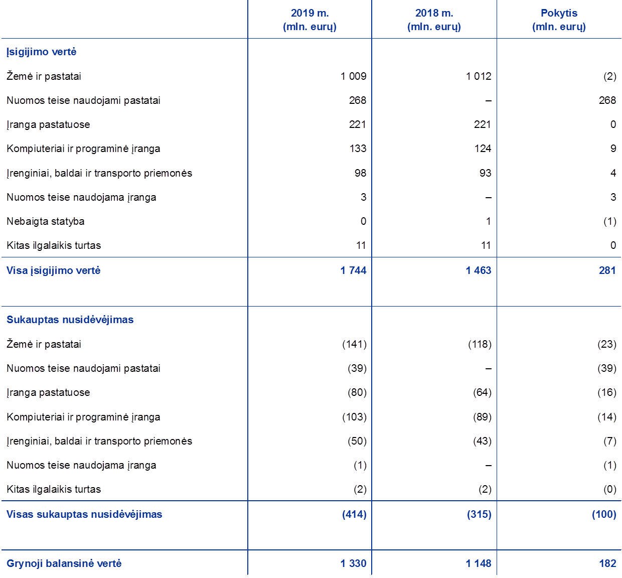 2019 m. šios išlaidos buvo mažesnės daugiausia dėl mažesnių patalpų nuomos, agentūrų darbuotojų ir išorės konsultantų paslaugų išlaidų. Nuomos suma sumažėjo dėl nuomos teise naudojamų pastatų pripažinimo balanse (žr. Apskaitos politikos pasikeitimai dalį 2.3 skirsnyje Apskaitos politika ir 6.1 pastabą Ilgalaikis materialusis ir nematerialusis turtas) ir atitinkamų išlaidų pripažinimo nusidėvėjimu.