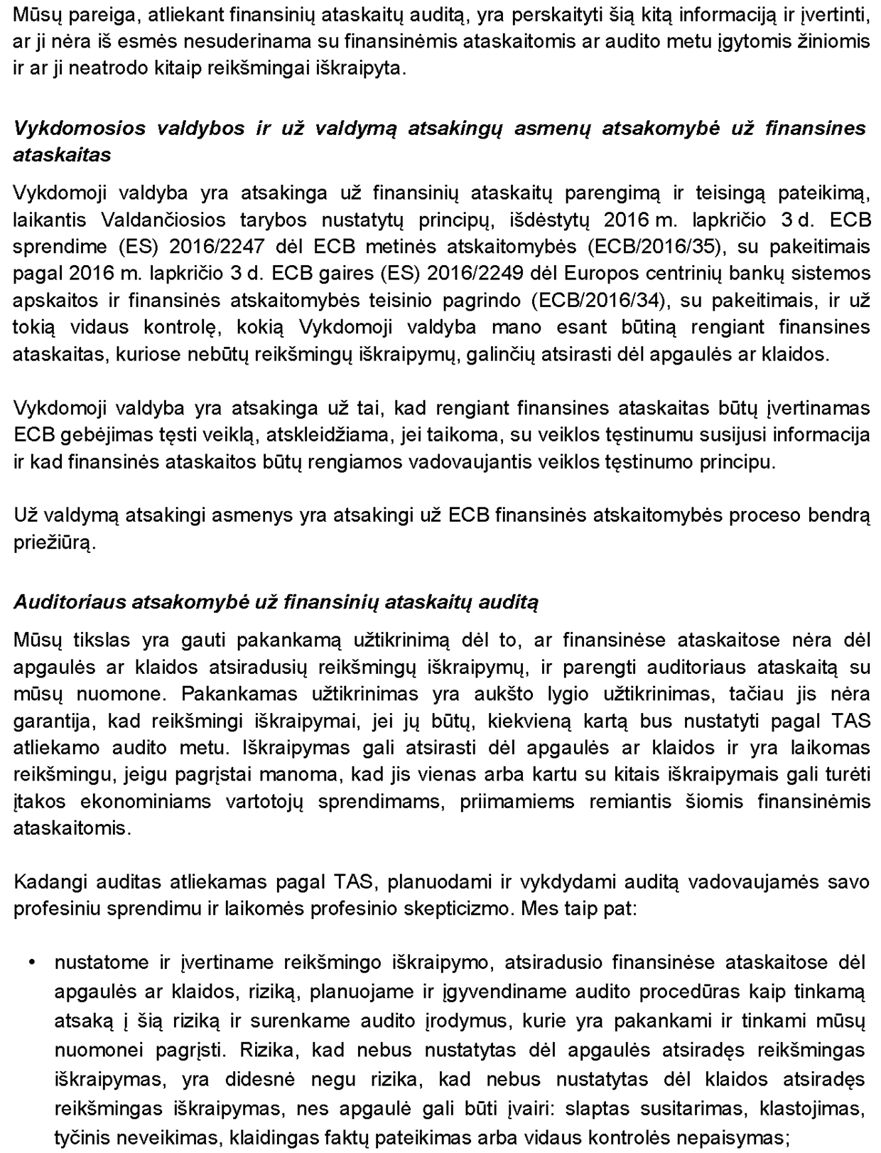 Šį dokumentą ECB pateikia kaip ECB išorės auditoriaus išvados neoficialų vertimą. Esant neatitikimams, vadovaujamasi „Baker Tilly“ pasirašyta versija anglų k.