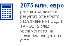 Нетният доход от лихви на ЕЦБ намаля с 666 млн. евро на 900 млн. евро (Графика 14), главно вследствие на разходи за лихви, произтичащи от нетното задължение на ЕЦБ в TARGET2. За спада допринесоха също разходите за лихви, свързани с олихвяването на вземанията на НЦБ от еврозоната във връзка с прехвърлени на ЕЦБ валутни резерви. Тези разходи бяха частично компенсирани от по-високи приходи от лихви, произтичащи от i) вземанията на ЕЦБ във връзка с разпределянето на евробанкноти в рамките на Евросистемата, ii) чуждестранни резервни активи и iii) ценни книжа, държани за целите на паричната политика.