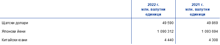 Състав на инвестициите в чуждестранна валута