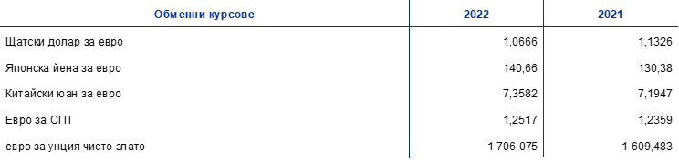 Основни валутни курсове и цена на златото през периода 2018–2022 г.