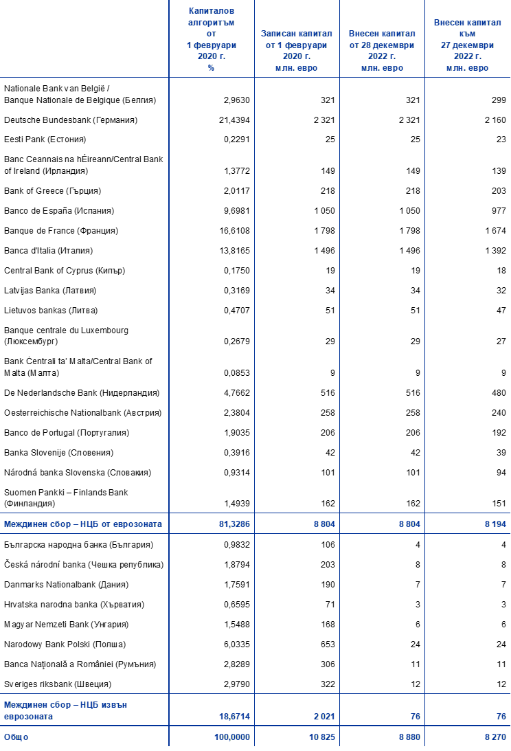 Вижте прессъобщението от 30 януари 2020 г. относно записания капитал на ЕЦБ след оттеглянето на Bank of England от ЕСЦБ.