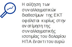 Τα δολάρια ΗΠΑ εξακολουθούν να αποτελούν το βασικό μέρος των συναλλαγματικών διαθεσίμων της ΕΚΤ, αναλογώντας στο 78% περίπου του συνόλου στο τέλος του 2022.