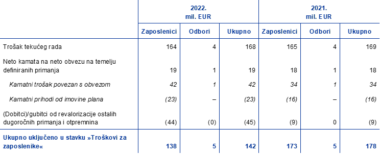 U stupu definiranih primanja mirovinskog plana prikazani su samo obvezni doprinosi koje uplaćuju ESB i zaposlenici. Dobrovoljni doprinosi koje su zaposlenici uplaćivali u stup definiranih doprinosa u 2022. iznosili su 189 mil. EUR (2021.: 220 mil. EUR). Ti su doprinosi uloženi u imovinu plana i stvaraju odgovarajuću obvezu jednake vrijednosti.