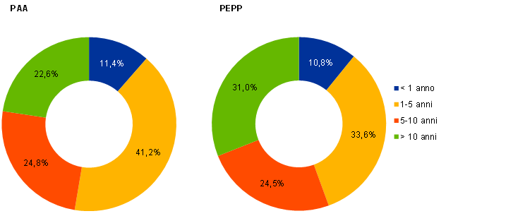 Per i programmi attivi, ovvero il PAA e il PEPP, i titoli detenuti dalla BCE per finalità di politica monetaria a fine 2022 presentano un profilo delle scadenze diversificato[9] (grafico 3).
