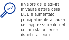 All’espansione dello stato patrimoniale della BCE ha contribuito anche l’aumento del controvalore in euro delle riserve in valuta della Banca e delle banconote in euro in circolazione.