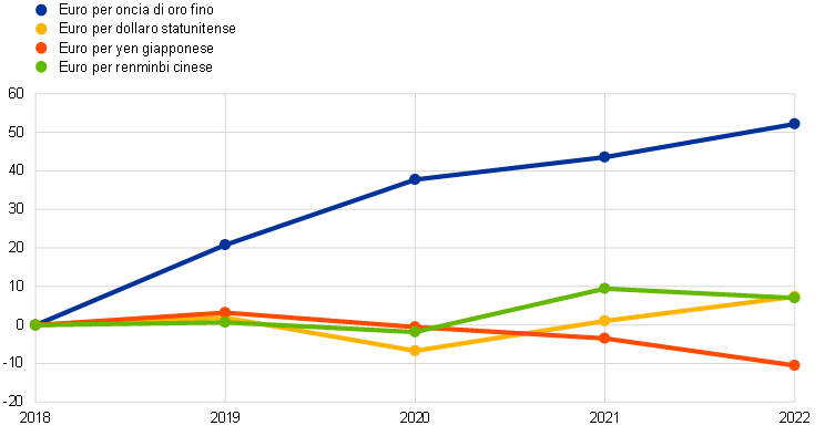 Principali tassi di cambio e prezzo dell’oro nel periodo 2018-2022