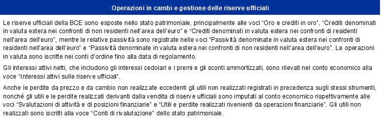 Nota: i “conti di rivalutazione” includono le plusvalenze totali risultanti dalla valutazione dell’oro, delle valute estere e dei titoli; non vi rientra invece il conto di rivalutazione relativo ai benefici successivi al rapporto di lavoro.