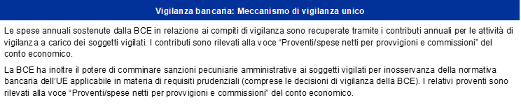 Le spese sostenute dalla BCE per l’assolvimento dei compiti di vigilanza sono recuperate attraverso i contributi annuali a carico dei soggetti vigilati. Ulteriori informazioni sono disponibili nel sito Internet della BCE dedicato alla vigilanza bancaria.